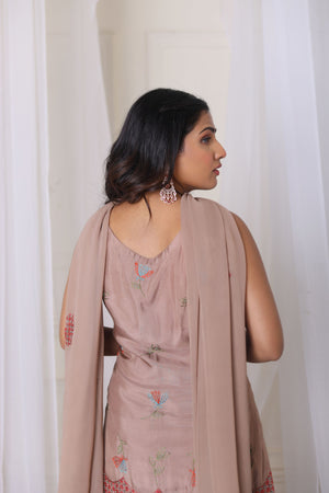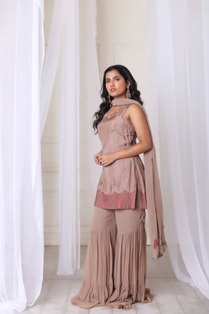 Hand Embroidered Brown Kurta With Sharara & Duppatta